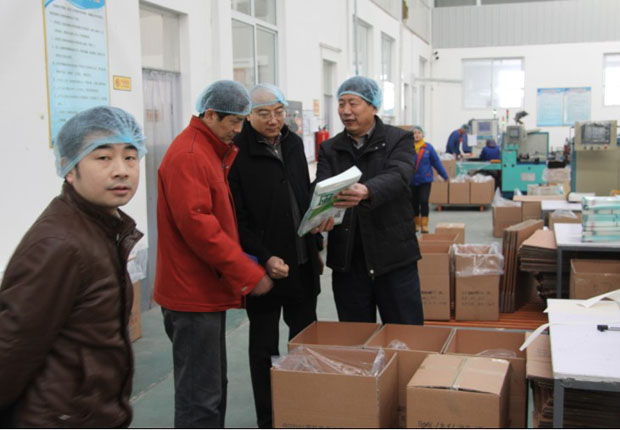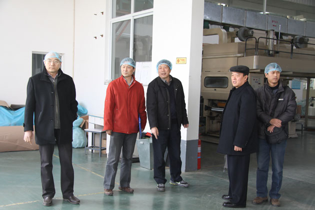 楊昌??偨?jīng)理與曲師大領導專家教授在制袋車間考察